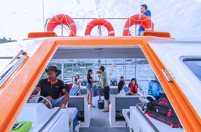크루즈 위에 앉아 아름다운 코타키나발루의 바다를 바라보며 행복한 시간을 가져보세요.