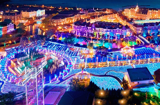 아시아 최대 규모의 테마파크인 하우스텐보스에 방문해 화려한 빛의 향연을 만나보세요.