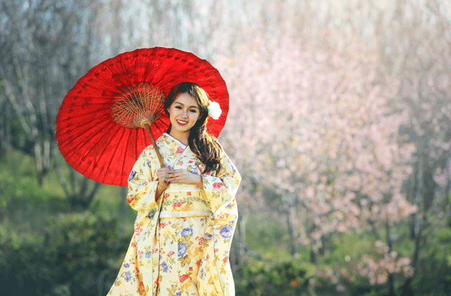 우아한 일본의 전통 복장, 기모노를 입고 낭만적인 삿포로의 거리를 걸어보세요.