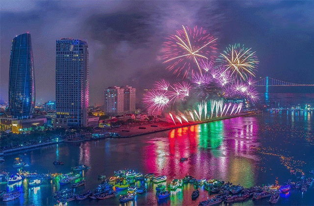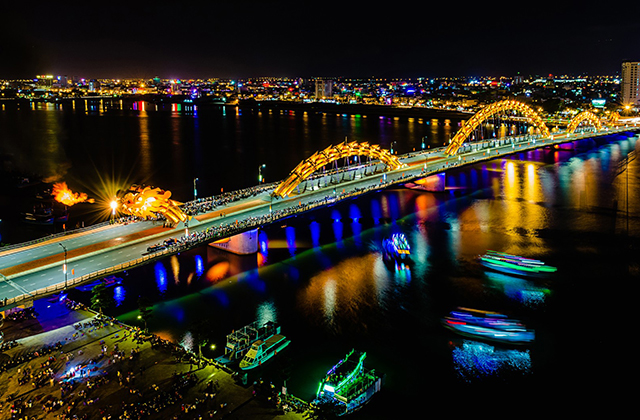 손트라 반도에서 다낭의 환상적인 전망을 보고 이후 로맨틱한 크루즈를 타고 드래곤 브릿지의 불쇼와 물쇼도 만나보세요.